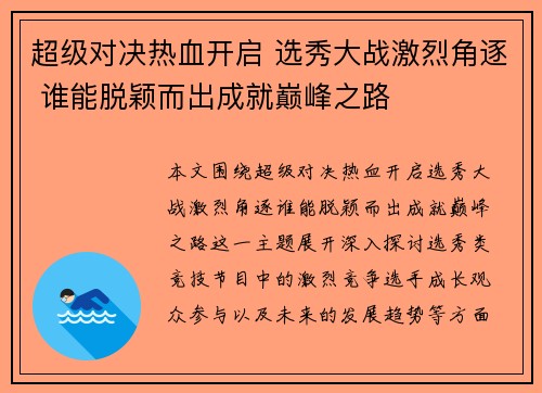 本篇文章将全面解析尤文图斯在最新比赛中的战报及高光瞬间,并深入探讨球队的整体表现。尤文图斯在本场比赛中展现了出色的技战术配合、球员个体表现及临场应变能力,凭借这些优势,他们在关键时刻逆袭,最终取得了重要的胜利。文章将从三个方面展开:战术部署与执行、球员表现与关键时刻的亮点、以及球队的整体协作与临场调整。每个部分将通过细致的分析,揭示尤文图斯在本场比赛中的精彩表现与潜力,为球迷和分析人士提供更深层次...